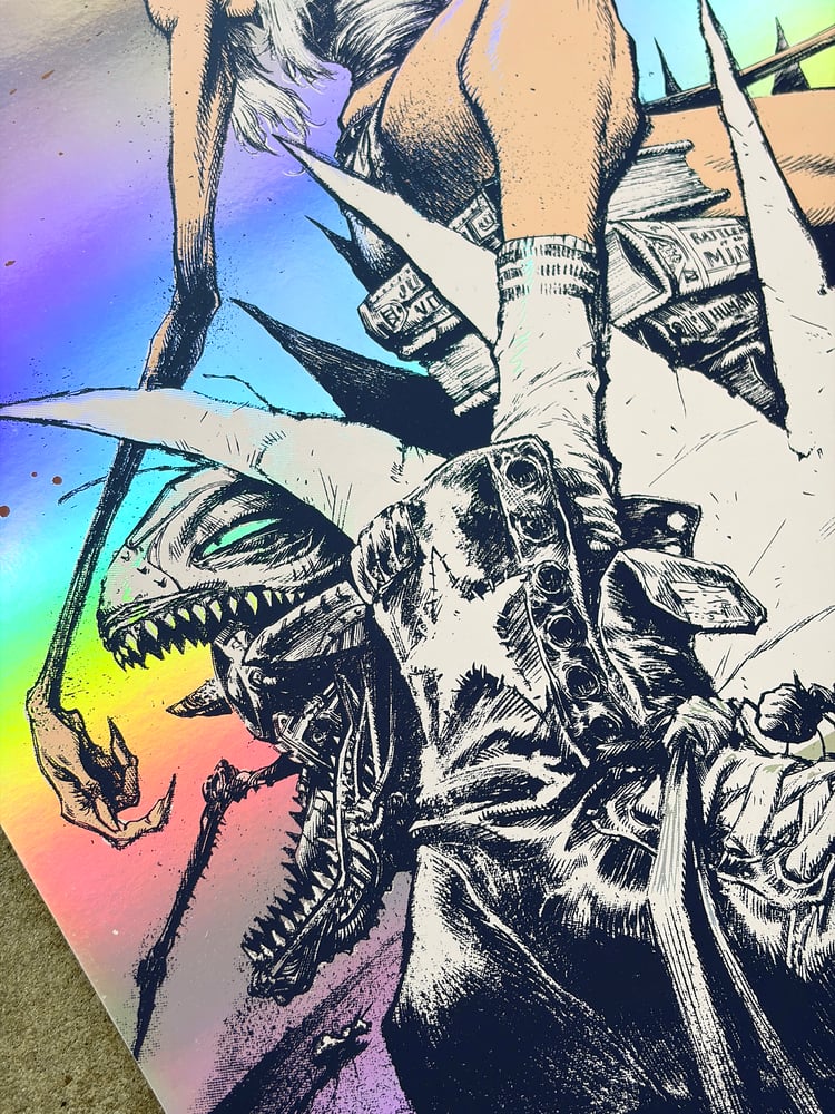 Edition of 160 Regular posters and edition of 85 Rainbow Foil posters, all hand numbered. Much less of each edition is available here through our site.